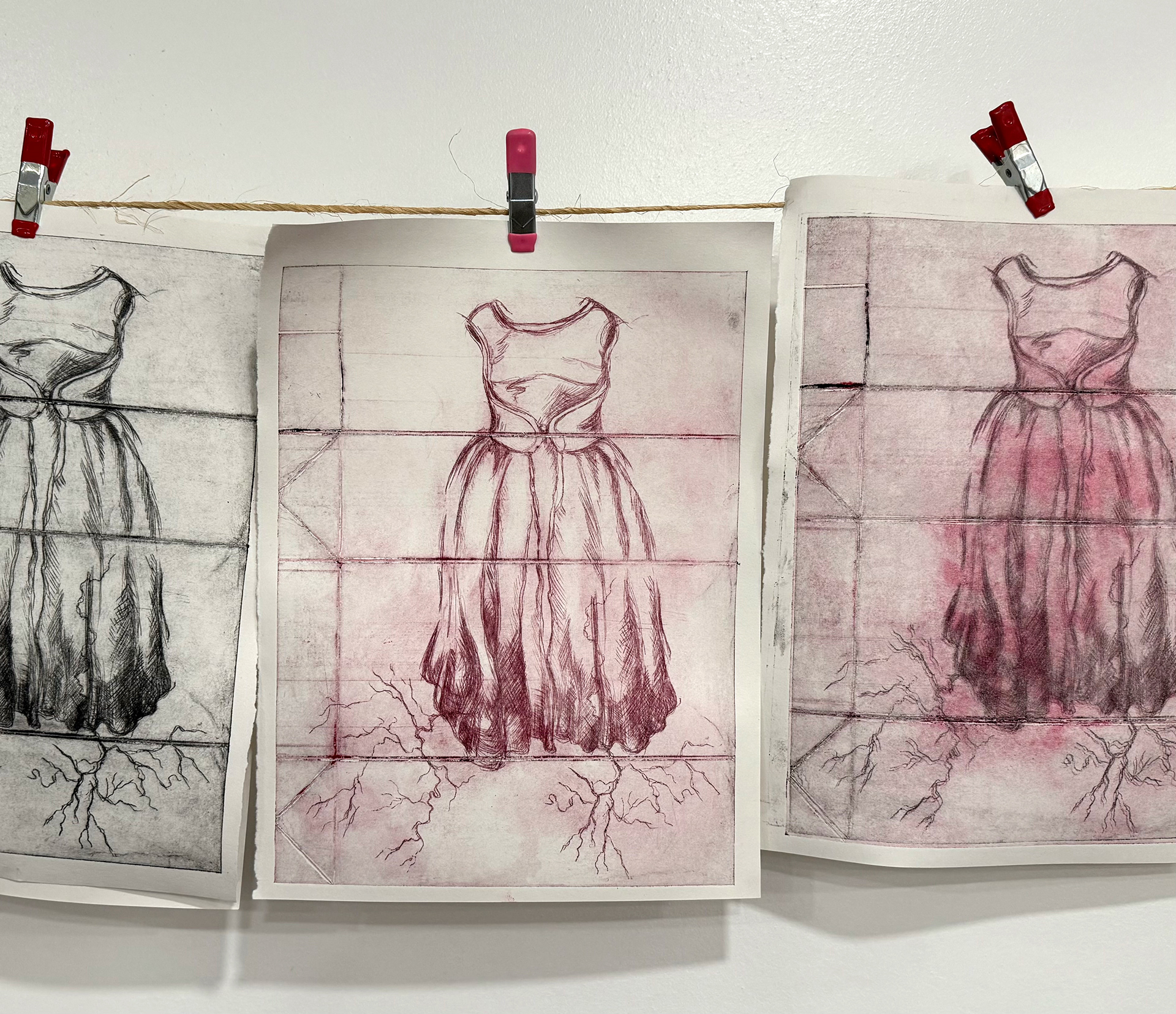 Drypoint etchings, monoprints, and collographs. 2025