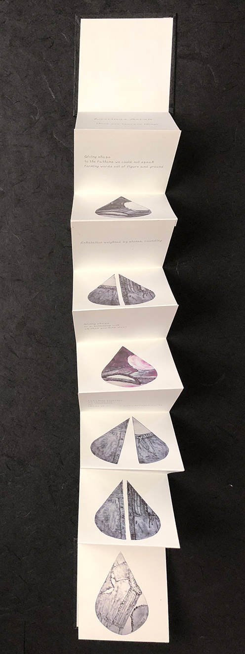 Digital typography, digital prints on Epson Premium Matte paper, mulberry covers, hand-bound concertina book.